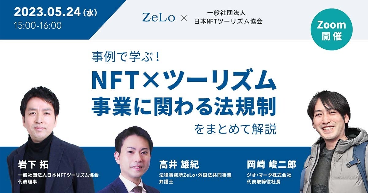 「事例で学ぶ!NFT×ツーリズム 事業に関わる法規制をまとめて解説」法律事務所ZeLoが5月24日(水)にウェビナーを開催