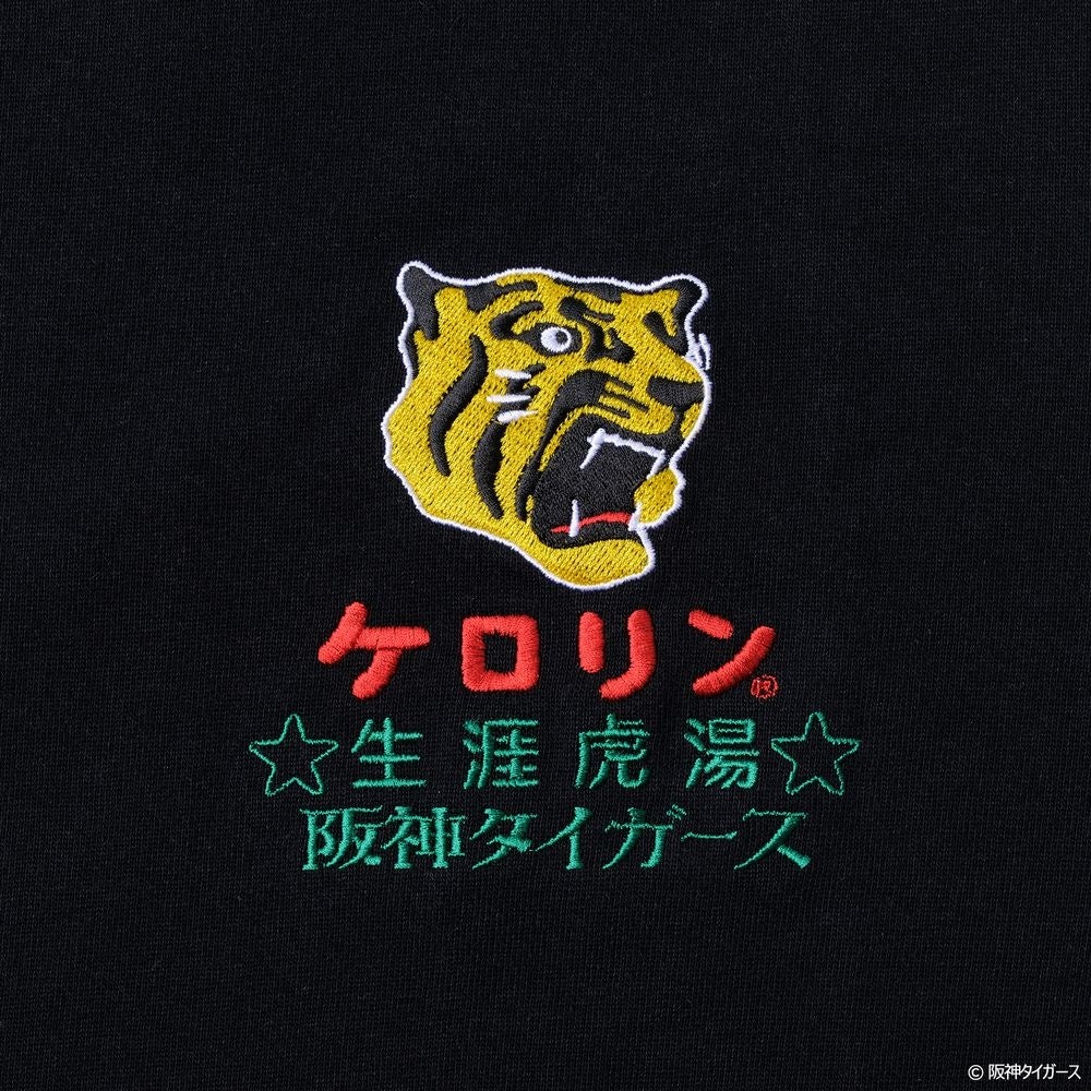 Tシャツのボディには9.1ozのマグナムウェイト生地を使用し、胸元へ『阪神タイガースのケロリン桶 ー生涯虎湯ー』のデザインを刺繍したTシャツです。