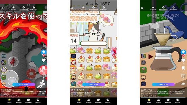 本サービスは、制作したゲームを簡単に共有しあえるプラットフォームです。スマートフォンで動画を見るような感覚でゲームを探して遊べるのが特徴で、ゲーム制作を学ぶ学生や個人クリエイターの作品発表の場としても活用いただけます。