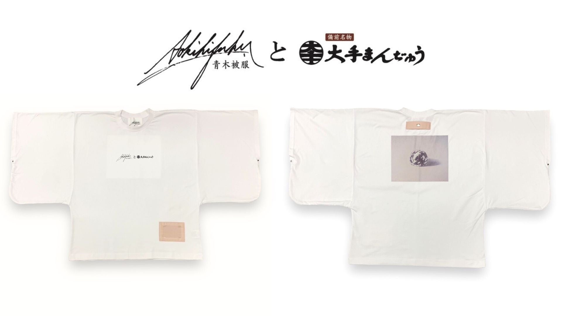 岡山の老舗企業「青木被服」「大手まんぢゅう」が異業種コラボ第二弾を発表。互いの特徴が見え隠れする遊び心満載の着物Tシャツを販売開始!