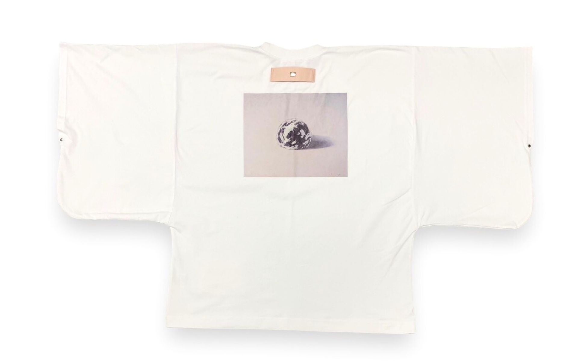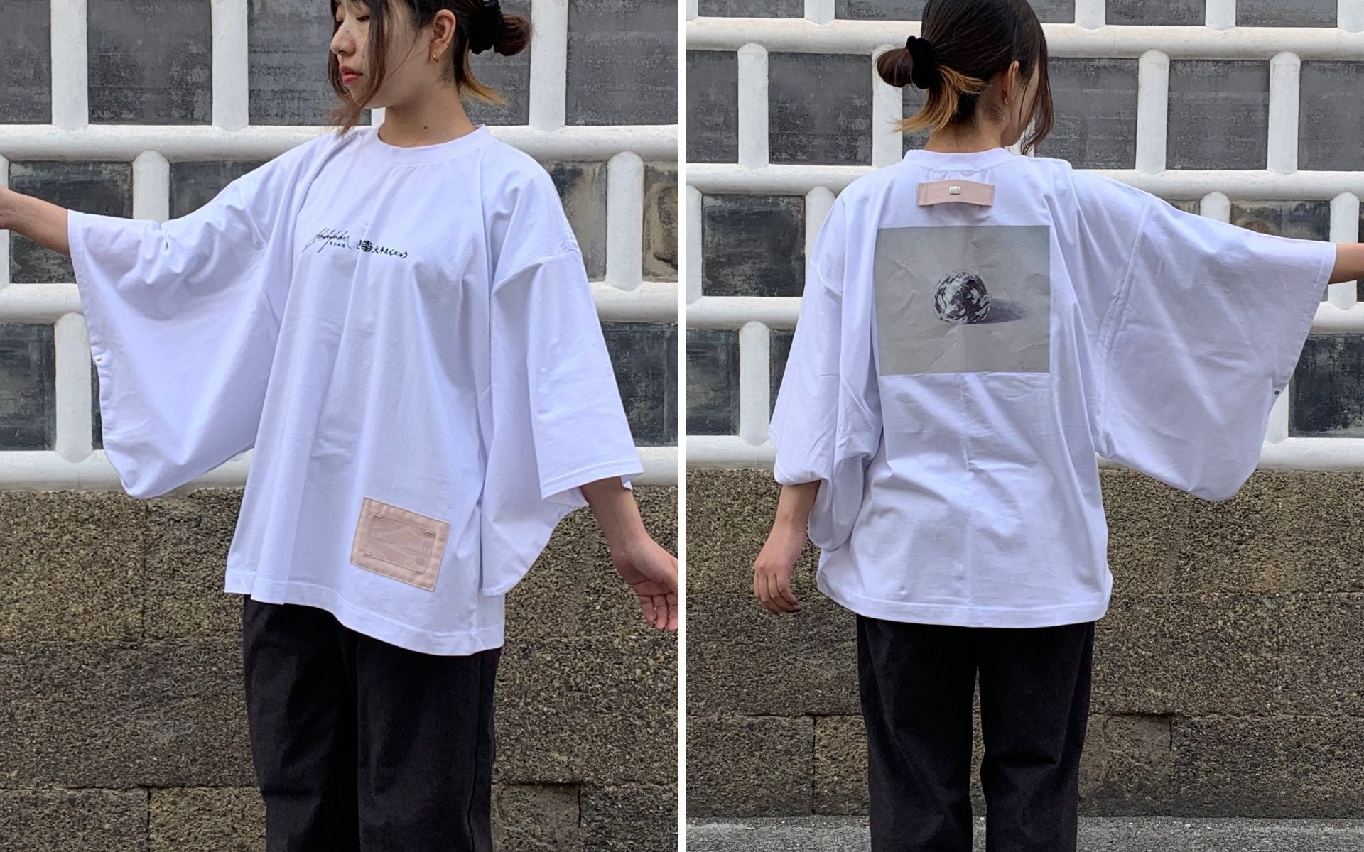 肌に触れ落ち着きのある肉厚コットン素材に前面にはコラボレーションロゴを、背面には児島慎太郎氏が描いた絵画を大胆に印刷したオリジナルTシャツとなっております。