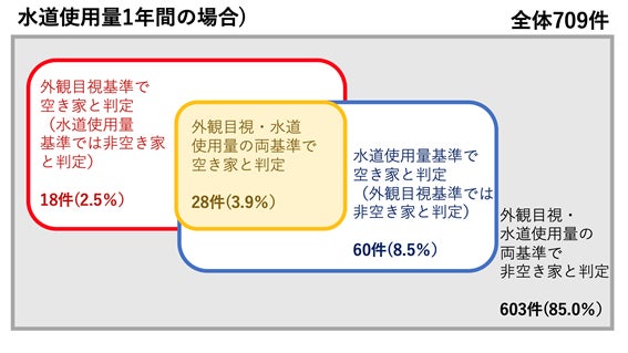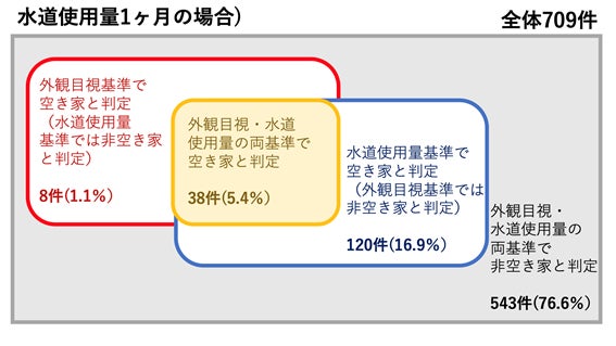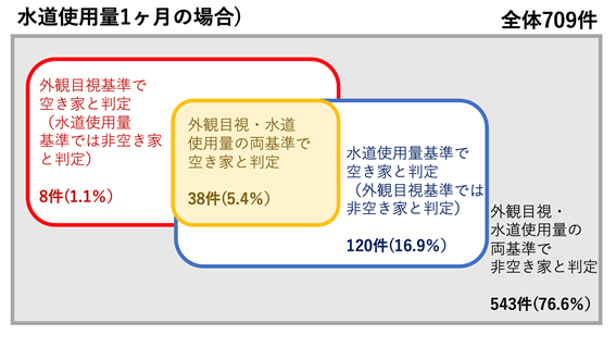 今回、分析利用住所数の「水道情報」の709件に対して、水道使用量に基づく空き家判定を実施した。