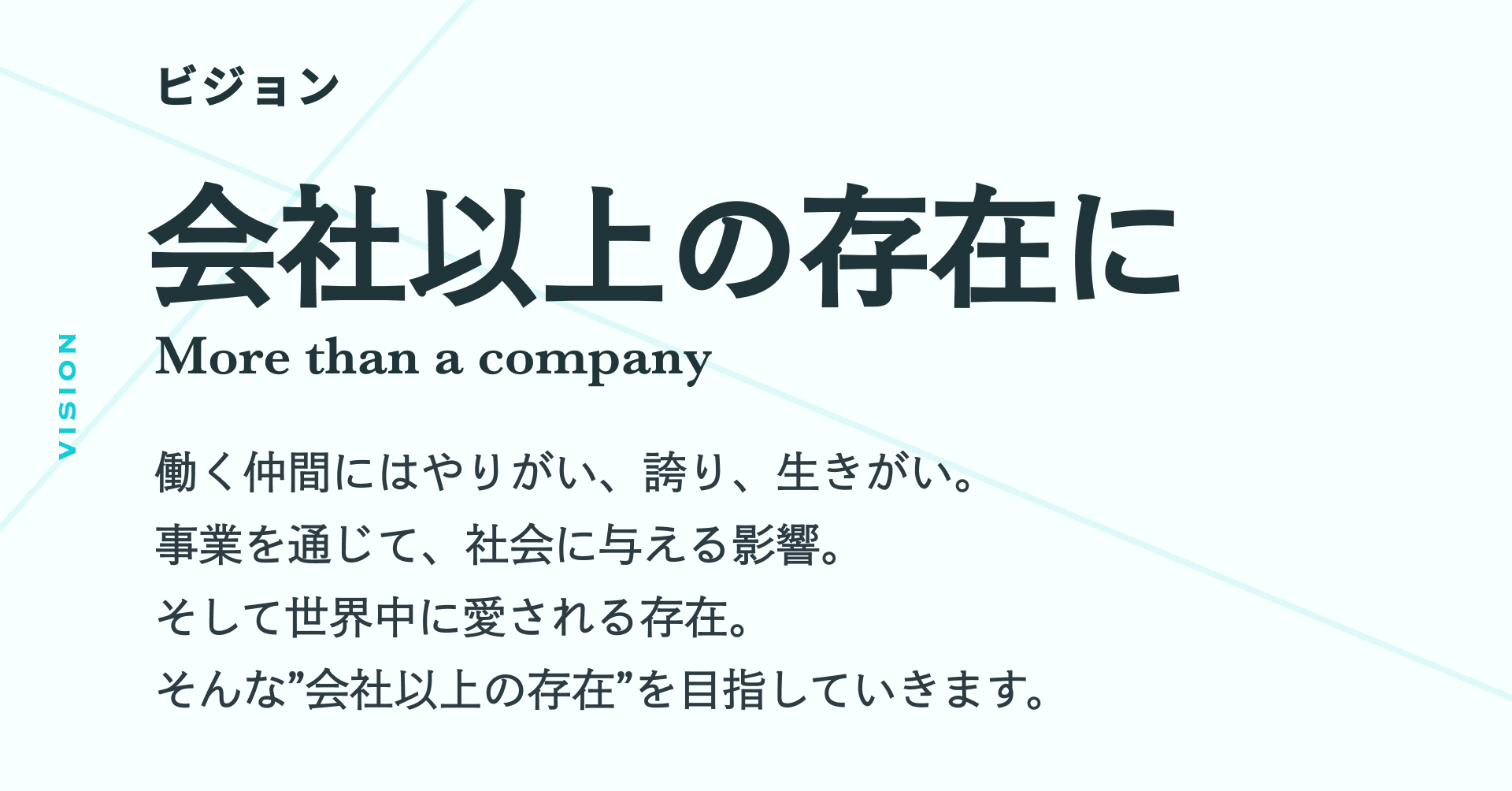 ビジョン:会社以上の存在に ~ More than a company ~