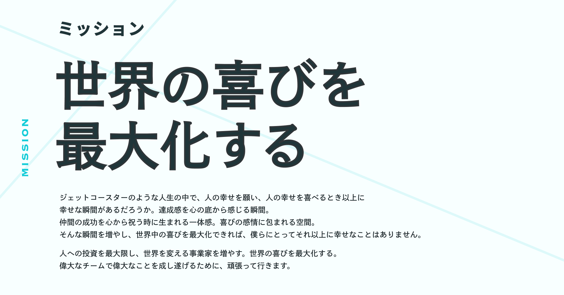 ミッション:世界の喜びを最大化する ~ Maximize the happiness around the world ~