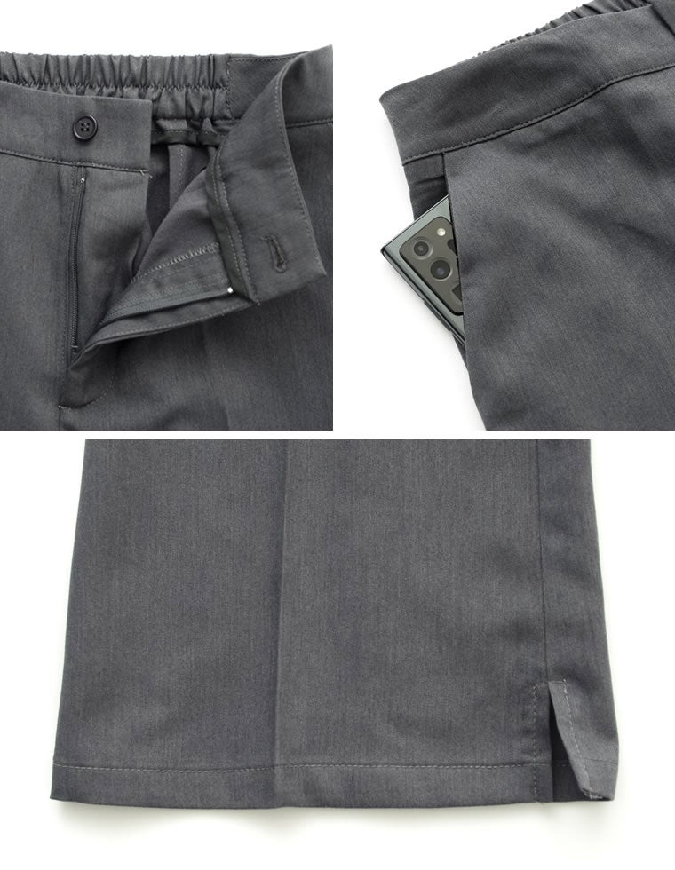 脚の形に沿うような、綺麗なシルエットを描くフレアのデザインにもこだわりました。センタープレス、ベルト―ループ付きでフォーマルな場にも着用いただけます。Re:EDIT(リエディ)ではお馴染みのバックゴムの仕様は、腰回りの窮屈感を軽減し、穿き心地の良さもアップします。
