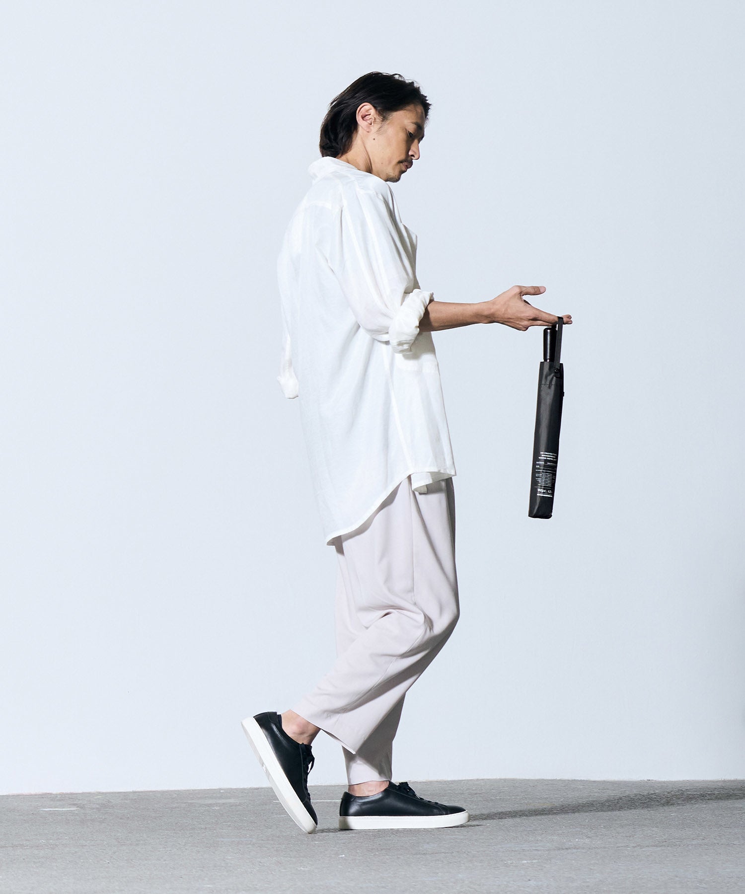 男性が「傘を持ち歩く習慣をつくる」コト。それは私たちにとって、挑戦だ。同じように、今日この傘を手に携える男性もなにかコトを起こそうと一歩踏み出している人ではないかと想像する。