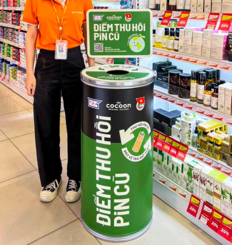 2021年より、美容液やメイク落としなどの空きボトルを回収する専用BOX「グリーンポイント」を設置。現在はベトナム全土161カ所に拡大し、ユーザーとともにプラスチックのリサイクル活動を進めています。
