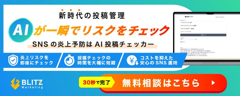 投稿スタッフの心理的負担軽減:AIがリスクを判別することで、スタッフの負担を軽減。安心してSNS投稿を行うことができます。
