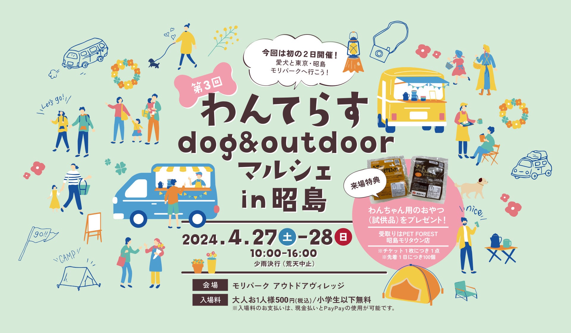 アウトドアを活用した地方創生に取り組む株式会社パシュート(本社:東京都台東区、代表取締役:中道麦)は、2024年4月21日(日)に三重県いなべ市の「やまてらす -FUJIWARA OUTDOOR LIVING-」 にて、第8回わんてらすdog&outdoorマルシェを開催いたします。また、4月27日(土)・28日(日)には、東京都昭島市の「モリパーク アウトドアヴィレッジ」にて、第3回わんてらすdog&outdoorマルシェを2日間にわたって開催します。