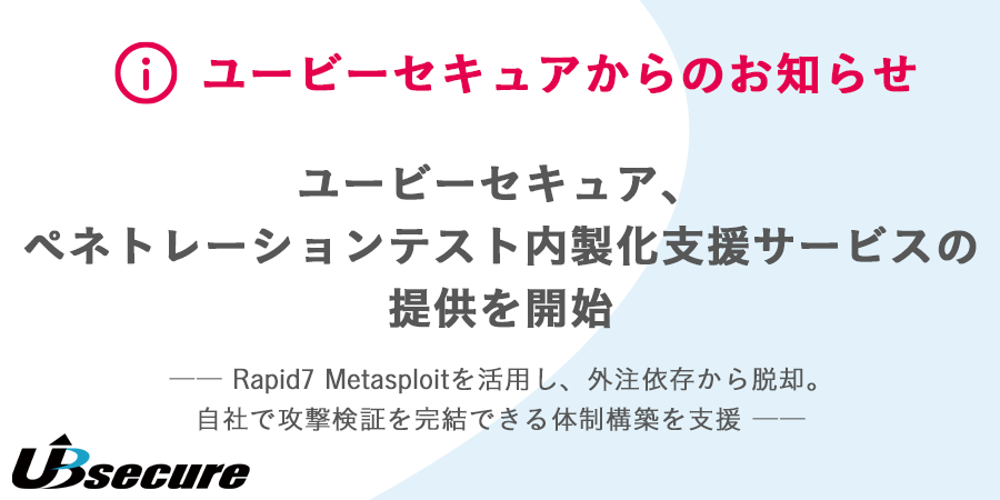 株式会社ユービーセキュア(本社:東京都中央区、代表取締役社長:松田 陽子、以下「ユービーセキュア」)は、ペネトレーションテストの実施を支援するソフトウェア「Rapid7 Metasploit Pro」(※1)を活用した技術者育成サービス「ペネトレーションテスト内製化支援サービス」(以下「本サービス」)の提供を2026年3月より開始します。