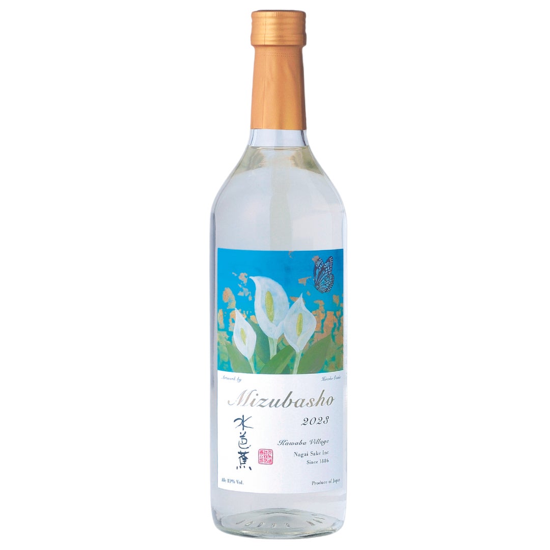 今回のラベルでは尾瀬の美しい風景をイメージしたバックに水芭蕉とアサギマダラを描いてくださいました。金箔をデザイン的に背景に用いる日本画の伝統的な技法によって、美しい黄金の土地・尾瀬と水芭蕉の花言葉でもある「変わらぬ美しさ」を表現しております。MIZUBASHO Artist Seriesをきっかけに日本酒の新たな魅力再発見に繋がり、また日本文化の多様性を改めて知っていただきたいという大竹氏の想いも込められています。