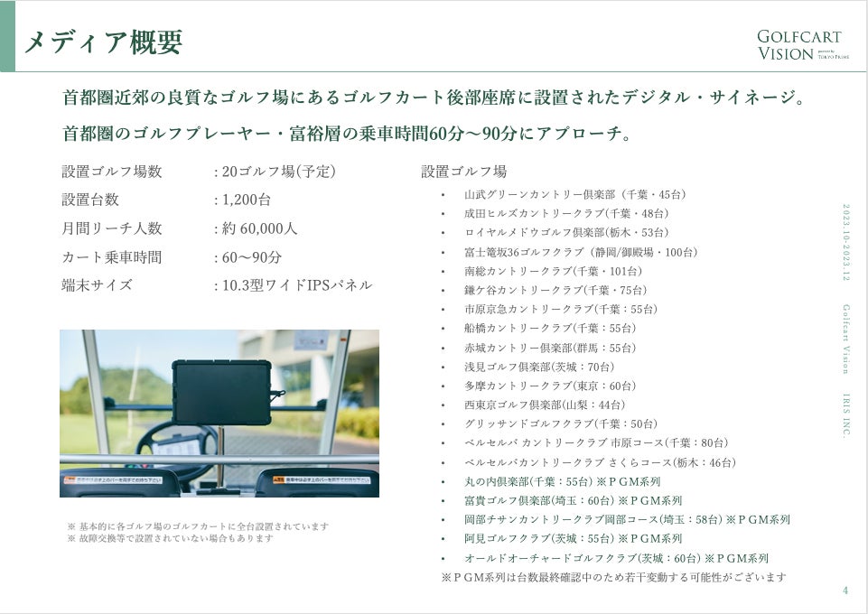今後もIRISは『Prime Mediaで人と産業に新たなきっかけを』をコーポレートビジョンに掲げ、Golfcart Vision®︎を通じてもご乗車の方々に新たな情報に出会うきっかけを作ってまいります。