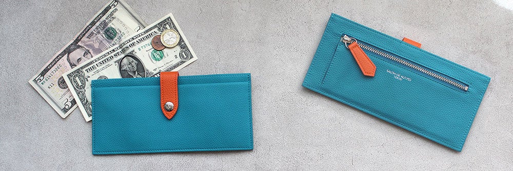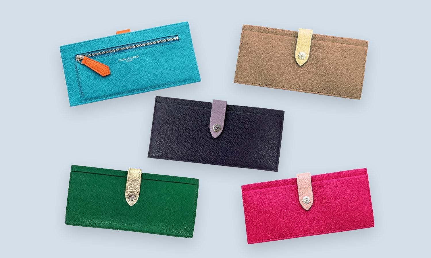 ブランドのルーツが染色工房であるサロンドアルファードは、これまで色に強いこだわり持って素材を選定してまいりました。特に、リアルレザーとしては珍しい、ゴールドやシルバーといった煌めきのあるレザーを採用した財布は、運気UPを意識したお客様から支持され続けておりますが、今回は仕事・健康・恋愛運など、目標や欲しい効果に合わせ、運気UPを意識した5色を厳選。素材には、スペインにある老舗タンナーのカーフレザーを採用。お守りのように毎日一緒に過ごせることを大切にしたスリムなデザインで、持ち運びやすさと実用的な収納性を兼ね備えています。