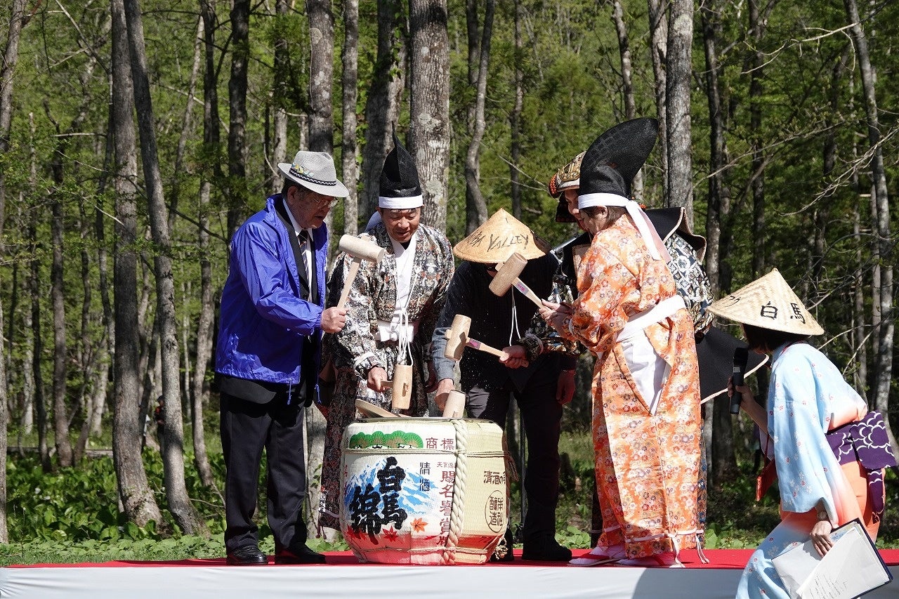 出発式では、塩の道太鼓の演奏や白馬商工会からの鏡割りで参加者を歓迎し、新潟県上越市からは「上杉おもてなし武将隊」が駆けつけ、「いざ出陣!」と参加者とともに出発。道中では地元住民からのふるまいやオカリナ演奏で彩りを添え、ゴールでは八方太鼓の迫力ある演奏や、白馬村観光大使の国本梨紗さんのお姫様姿での登場がセレモニーを盛り上げました。最後は恒例のからこまきで参加者に楽しんでもらいました。