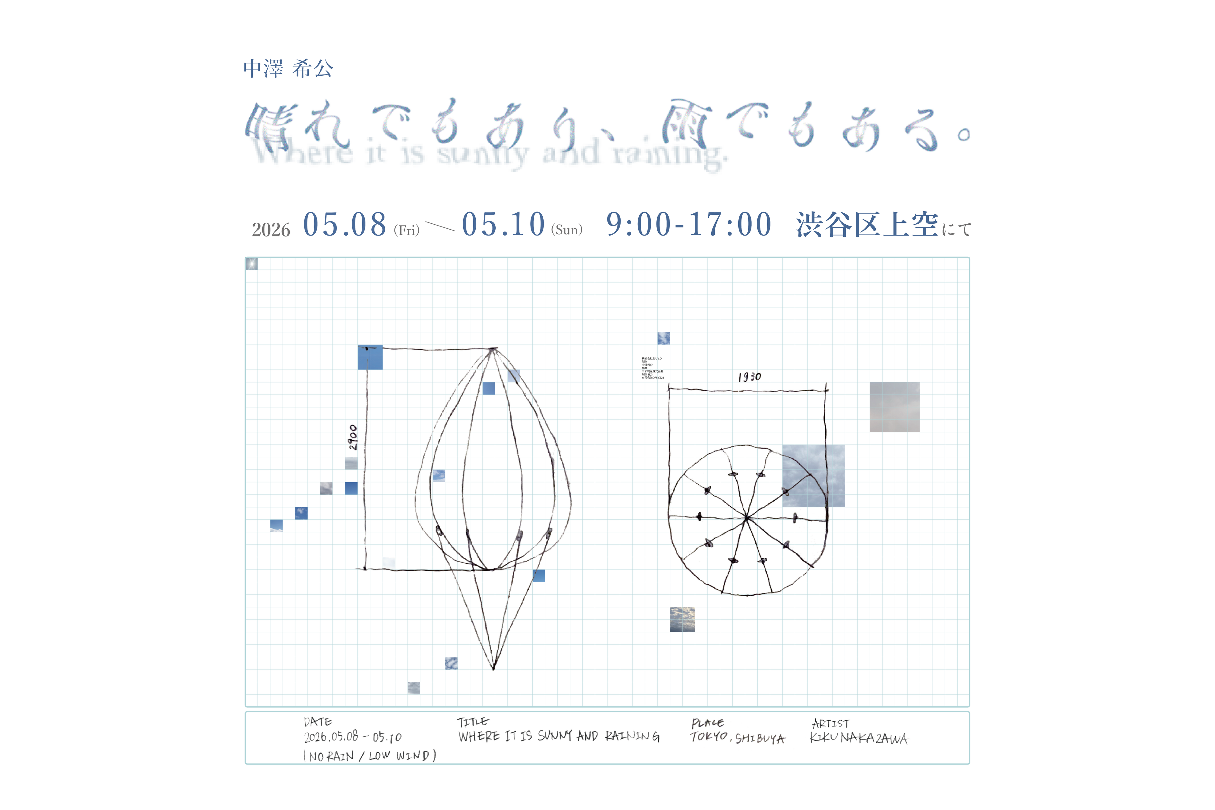 株式会社むじょう(本社:東京都目黒区、代表取締役:前田陽汰)は、母の日にあわせて開催する「死んだ母の日展 2026」の関連作品として、東京藝術大学大学院美術研究科グローバルアートプラクティス専攻 修士1年・中澤希公による新作アドバルーン作品「晴れでもあり、雨でもある。」を発表します。