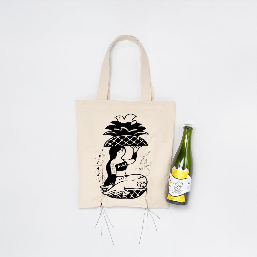お酒のイメージから生まれたイラストと、AlexanderLeeChang によるステッチが施されたオリジナルのボトルバッグ。