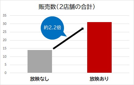 2店舗合計のPOSデータでは「OMO クラモニforガッチャ!シェルフ」の放映期間中(2023年12月4日(月)~12月10日(日)7日間)は、放映しなかった期間 (2023年12月18日(月)~12月24日(日)7日間)に比べ約2.2倍に販売数が増加したことが分かりました。