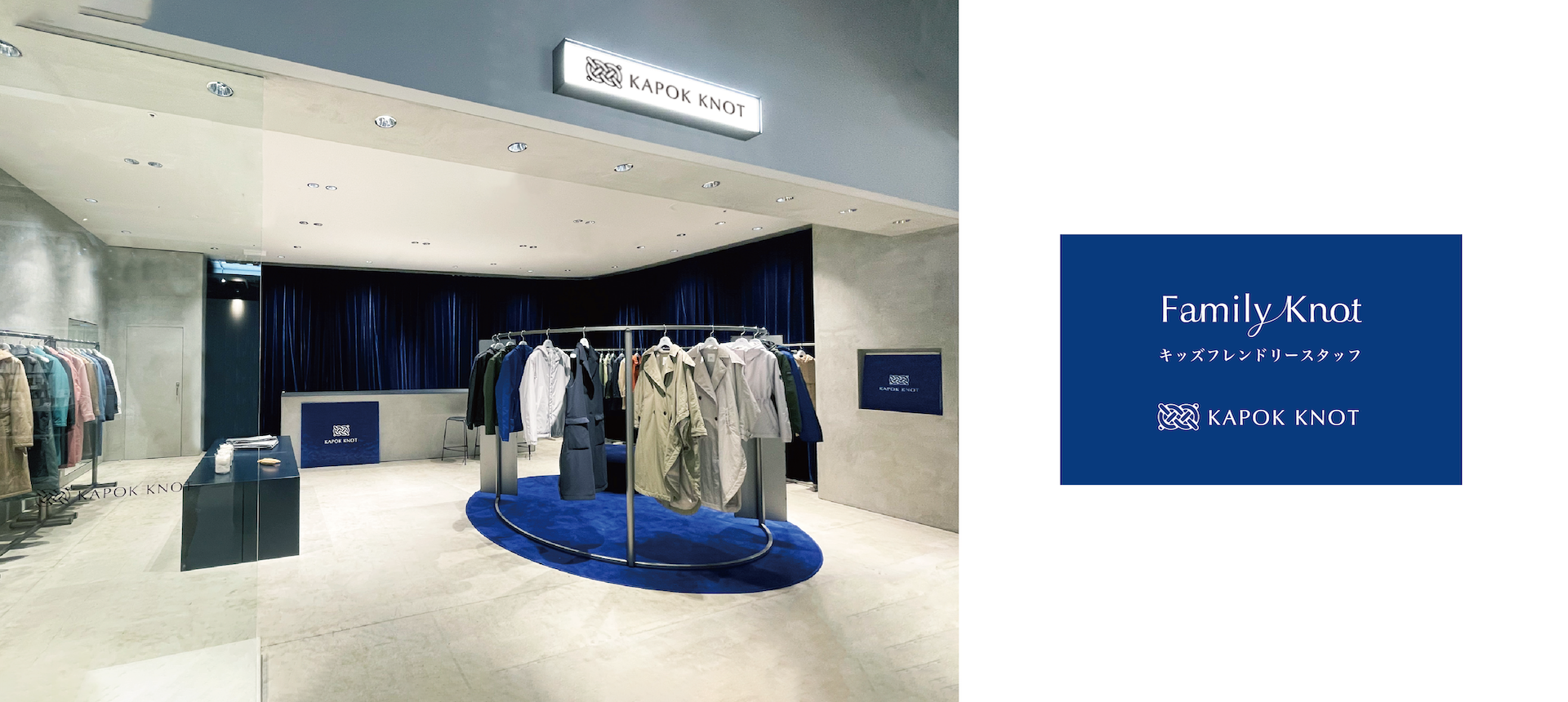この度KAPOK KNOTは、2023年5月5日(金)「こどもの日」より、KAPOK KNOT MIYASHITA PARK STOREにて、「『Family KNOT』〜ファッションを楽しみながら子どもとの時間を大切に〜」を掲げた新しい接客スタイルを開始いたします。