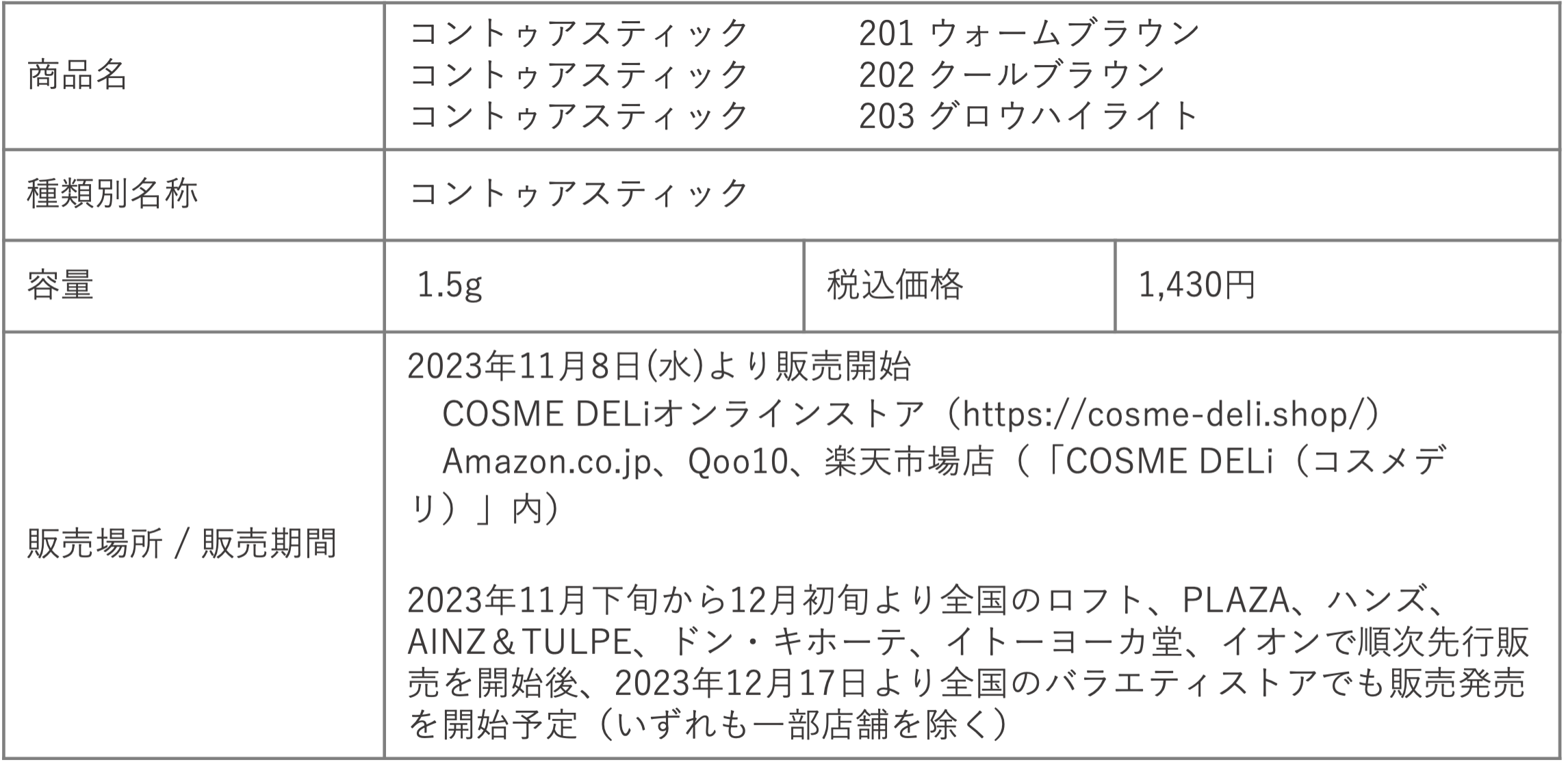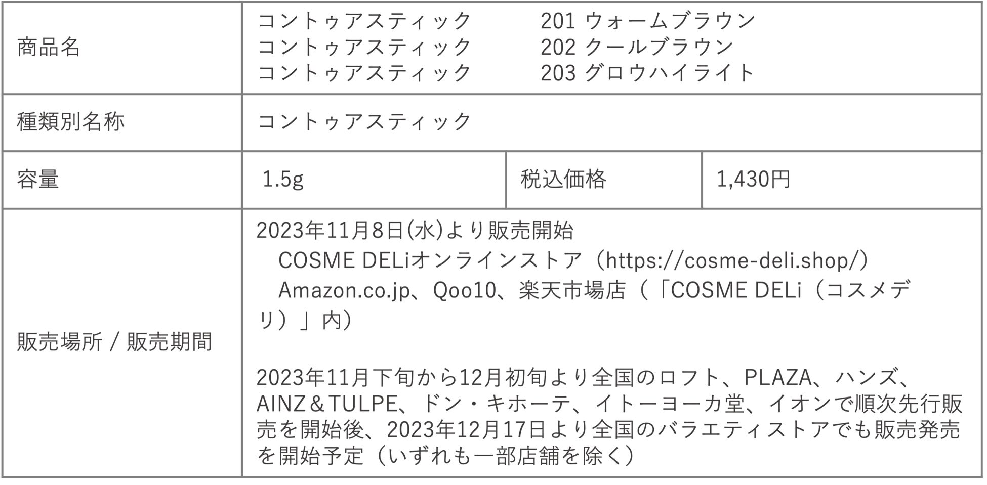 本アイテムは自社サイトであるCOSME DELi(https://cosme-deli.shop/)、楽天、Amazon、qoo10などの各種ECサイトにて2023年11月8日(水)より販売開始します。