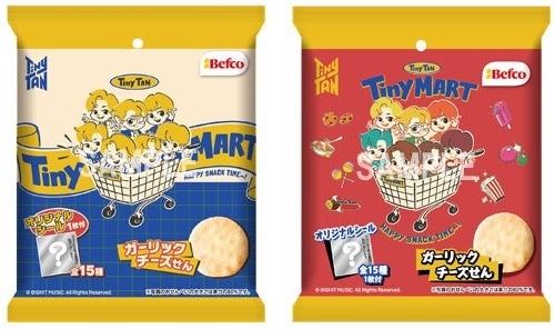 2022年9月に第1弾商品「TinyTANハニーバターせん」を発売し、お客様に大変好評をいただきました。今回発売する第2弾商品では、デザートをモチーフにした「TinyMART」のイラストを使用して展開いたします。パッケージは2種類あり、中身は、韓国のトレンドグルメである「マヌルパン」を再現した甘いクリームチーズとガーリックバターの甘じょっぱさがクセになる、背徳感たっぷりな、一口サイズのソフトせんべいです。