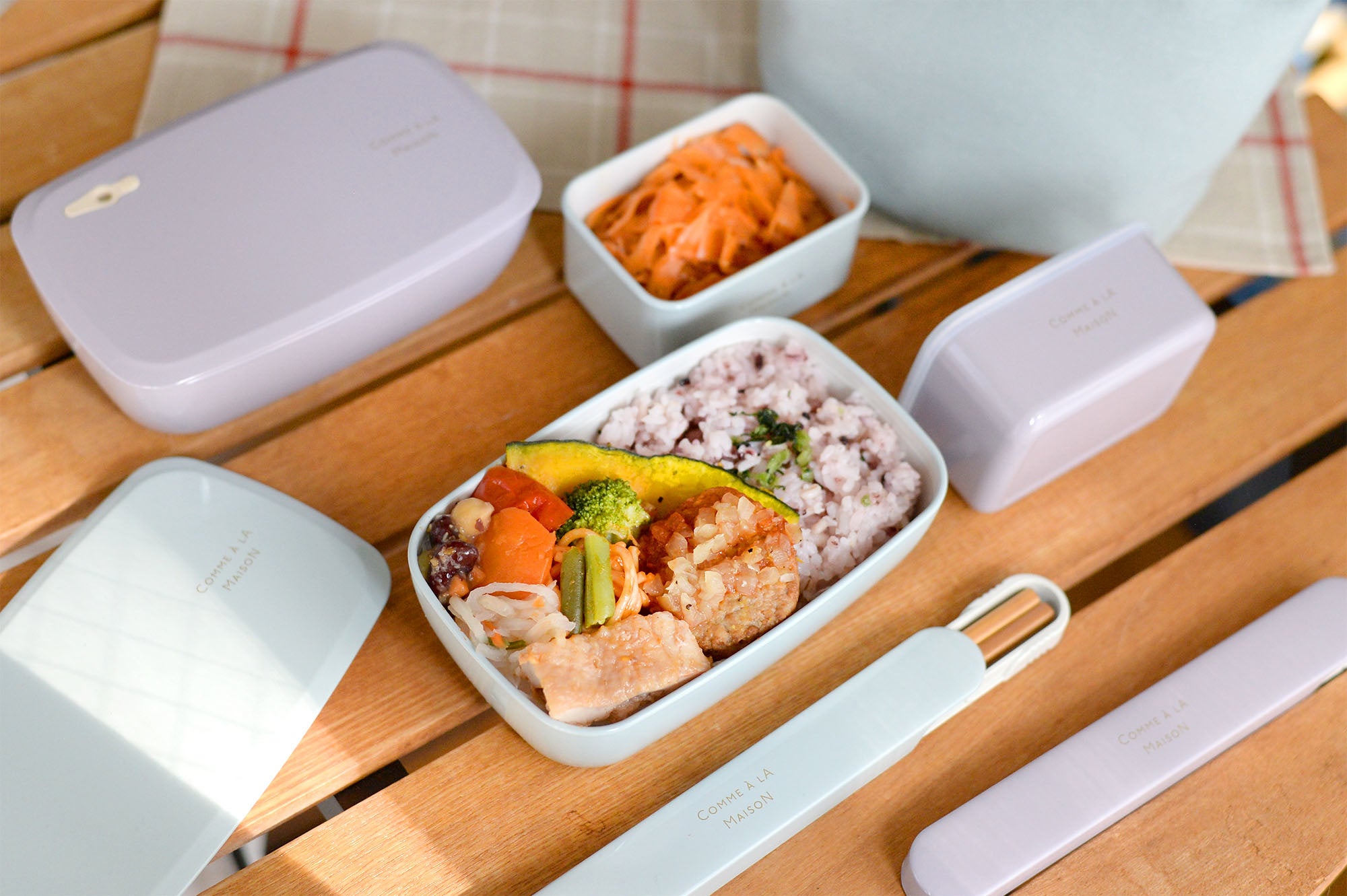 ランチボックス、カトラリー製品の一部に植物由来のバイオマスPETを使用。
