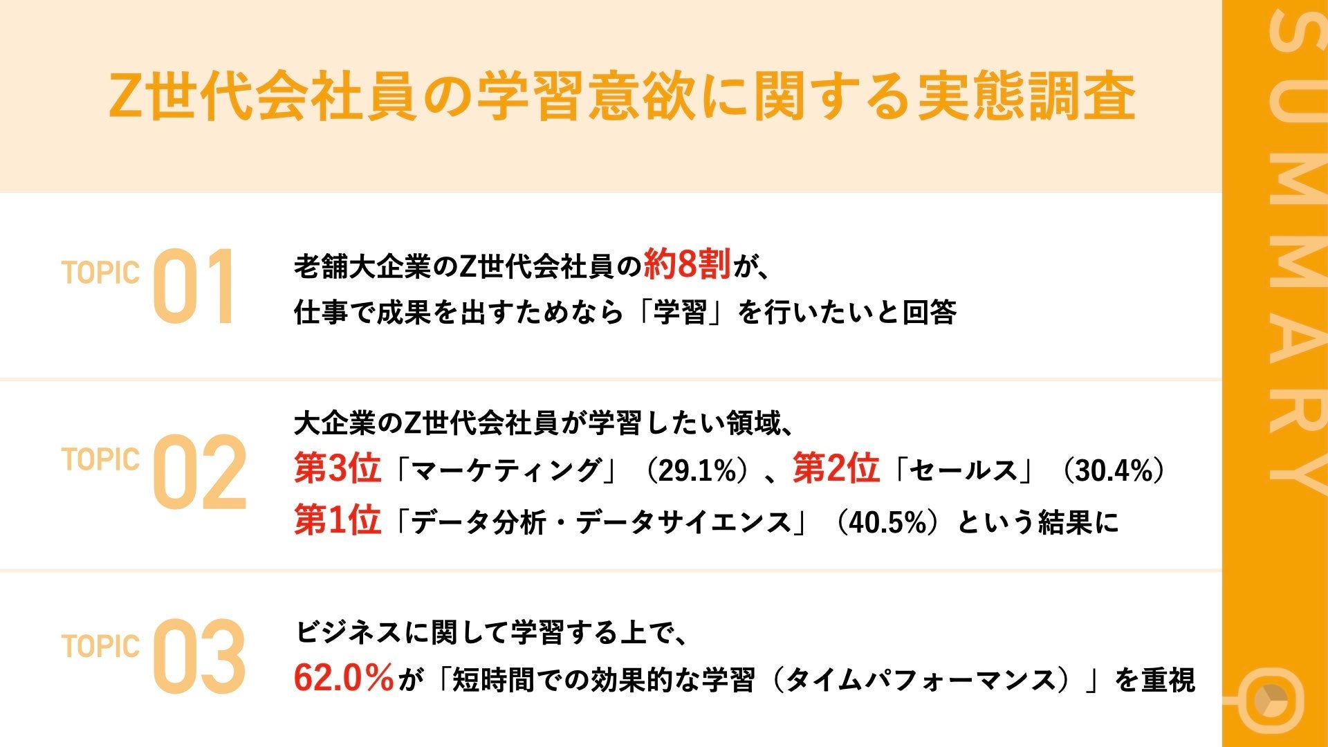 【老舗大企業に勤務する、Z世代会社員の学習モチベーションを調査】約8割が「仕事で結果を出すためなら学習を行いたい」と回答!関心のある領域第1位は・・?
