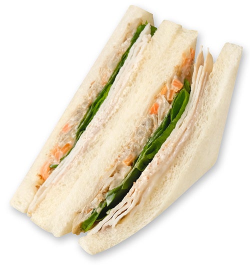 肉厚なキハダまぐろカツレツをタルタルソースと醤油で味付けし、レタス、大根、にんじんとサンドしました。