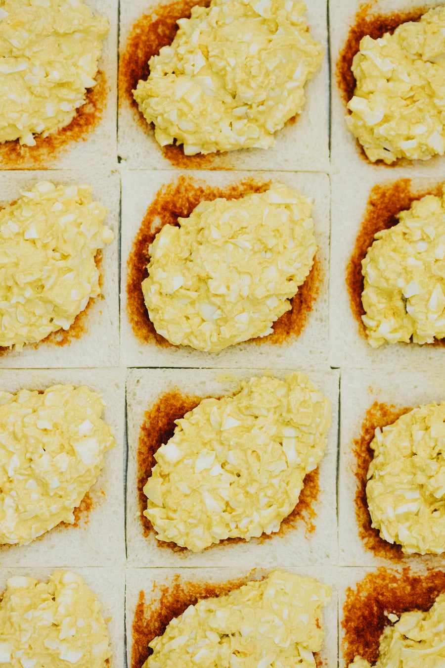 創業して以来、「サンドイッチのダイヤ」といわれるほどサンドイッチに定評がありました。その所以は、「たまごサンド」にあると考えています。どの工程にも必ず人の手のひと手間を加えることを惜しまず、ゆで卵をつぶす際も、白身が少し大きめに残る頃合いの見極めを職人が見守り判断しています。そしてそのたまごに合わせるのが自家製マヨネーズです。このマヨネーズは、ダイヤ製パンのサンドイッチの命とも言える大切なもので、創業者の多田定男が自ら開発し、たどり着いた味です。これがいまでも守り継がれ、ダイヤ製パンの看板商品である「たまごサンド」になっています。