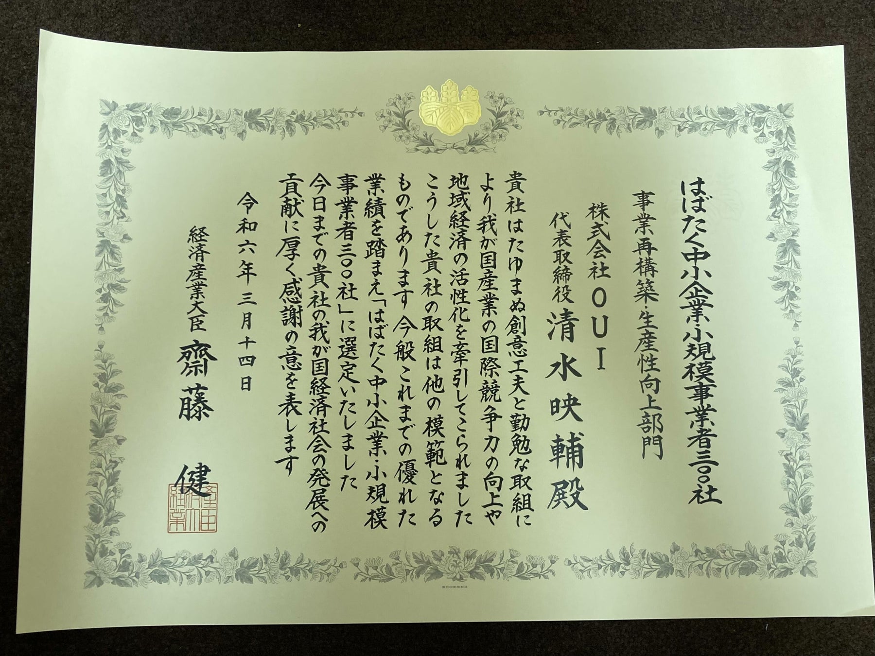 OUI Inc.が中小企業庁のはばたく中小企業・小規模事業者300社に選出!