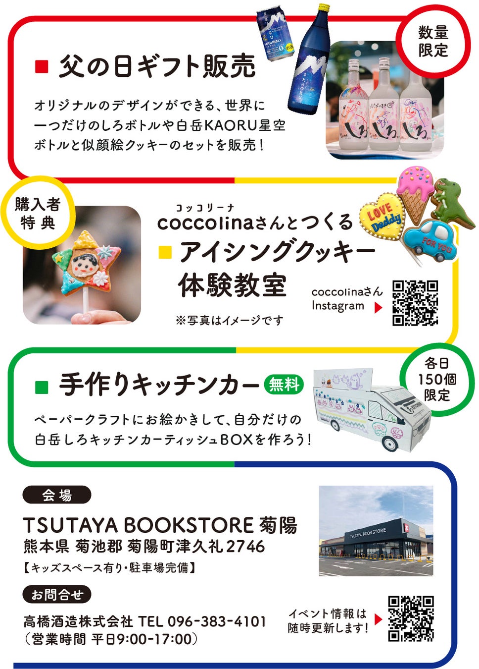 6月7日(土)・8日(日)、TSUTAYA BOOK STORE 菊陽にて家族みんなで楽しむ「白岳 父の日ファミリーフェス2025」を開催!