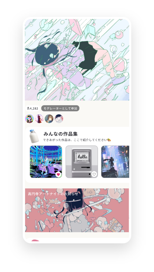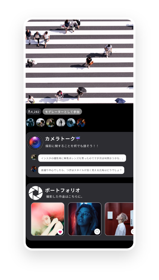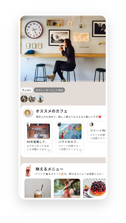 コミュニティの作成や参加により、共通の趣味や目的等があるユーザーを集めて、交流をすることができます。
