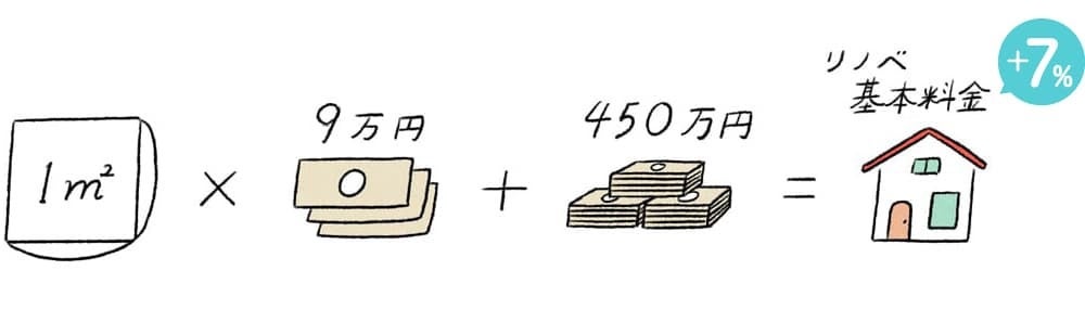 ゼロリノベの料金プランは、面積に応じて基本のリノベ料金が決まる、明朗な料金制度を導入しています。
