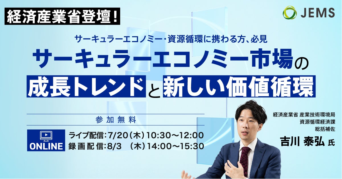 経済産業省登壇!「サーキュラーエコノミー市場の成長トレンドと新しい価値循環」無料オンラインセミナーを7/20(木)、8/3(木)に開催