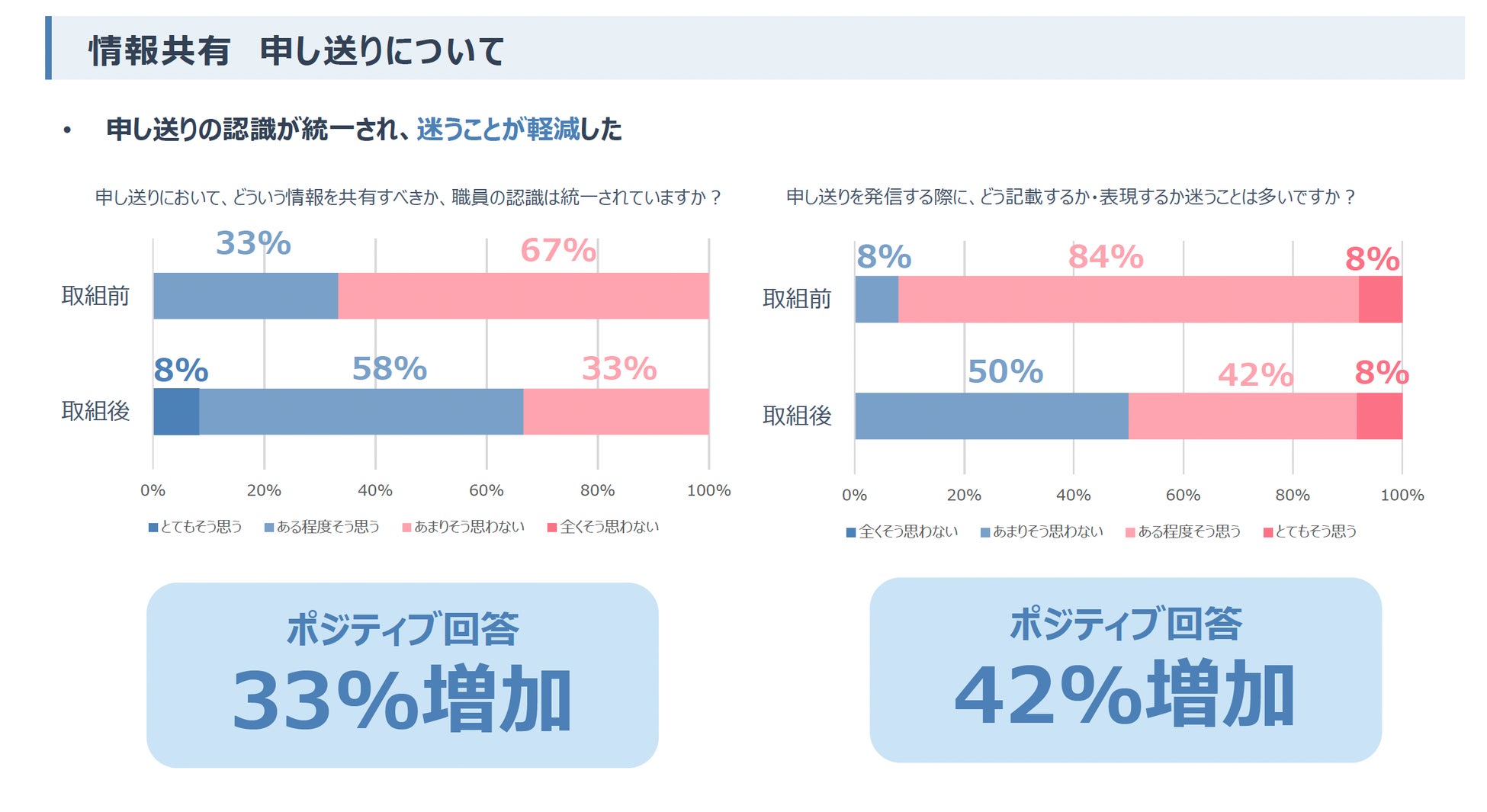 介護士からの申し送りが増え、チーム全体の申し送り意識が高まった