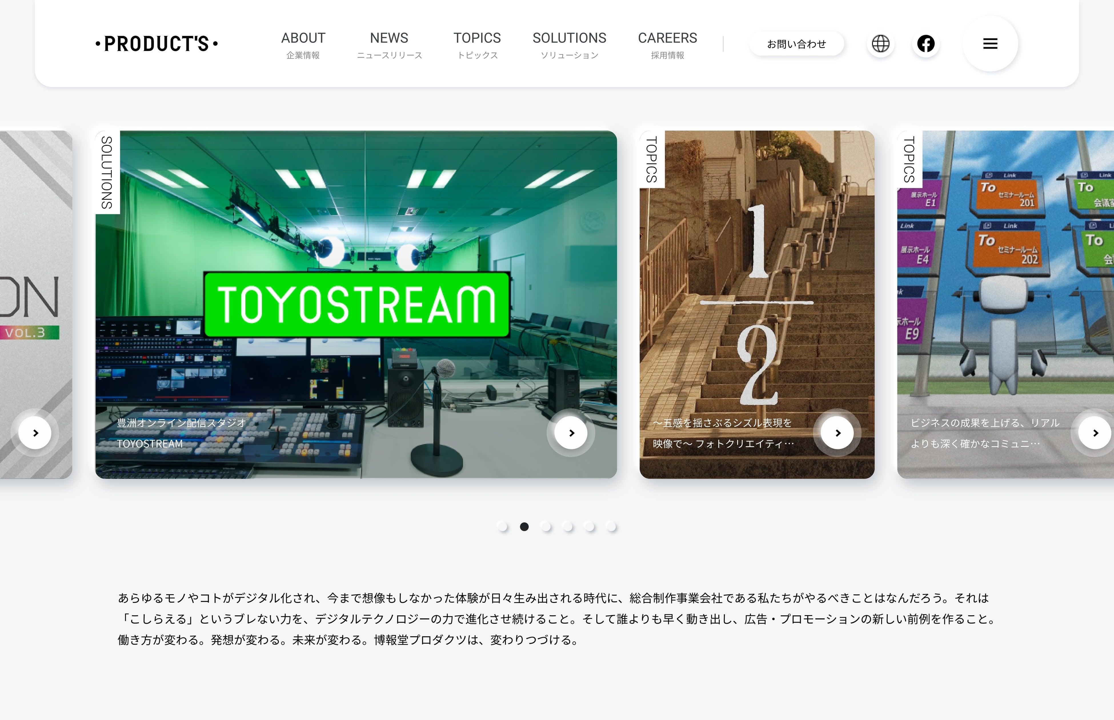 博報堂プロダクツのコーポレートサイトは、これからも新しい前例をつくり、企業とのつながりを生み出すプラットフォームとして、機能・情報の充実化を図ってまいります。