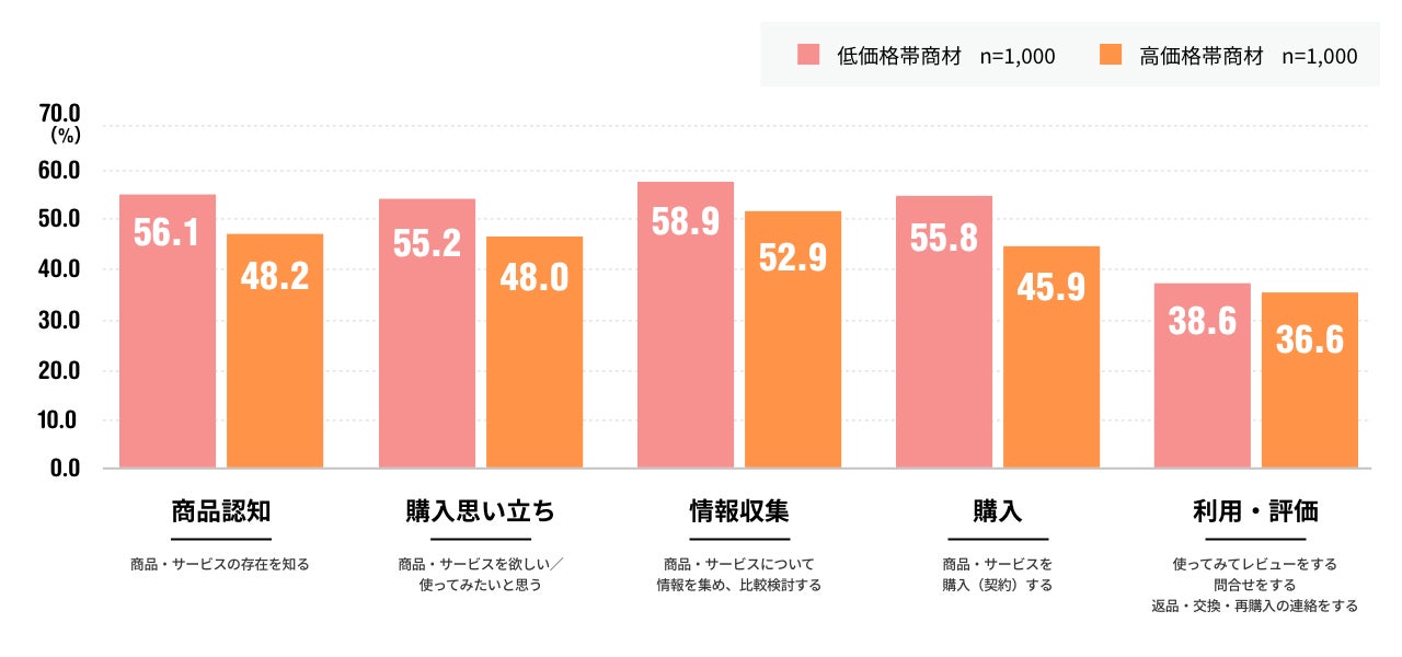 ※低価格帯商材:「食品・日用品、フードデリバリー等」、高価格商材:「電化製品・保険商品・自動車等」