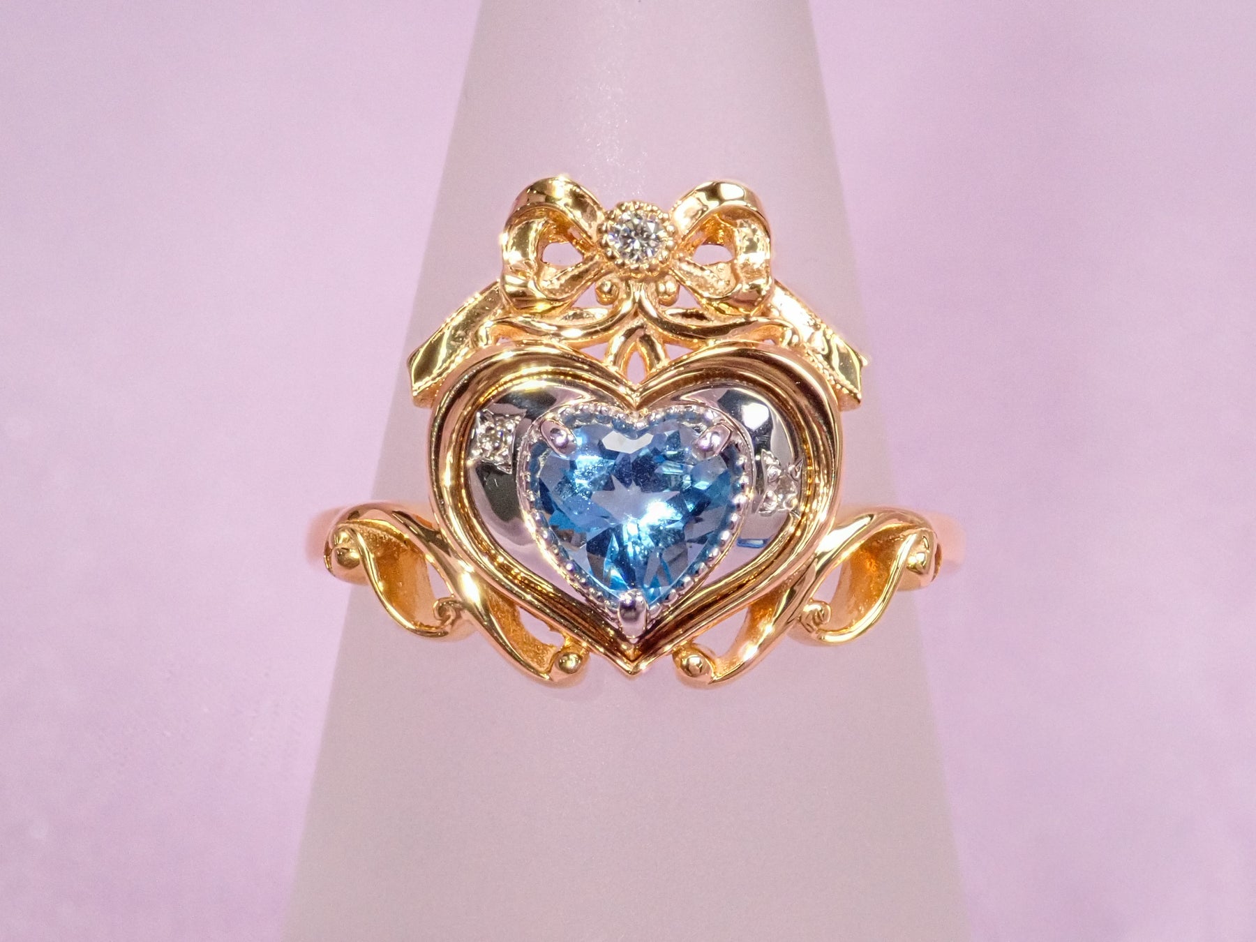 精巧に再現されたセボンスターのハートカットが施されたカラーストーンと、それを引き立たてる煌びやかなダイヤモンドを配し、ゴールドを基調とした地金で仕立てました。