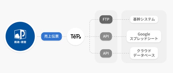この機能により、『PCAクラウド 商魂・商管』の売上伝票データを、『TēPs』を介して20以上のサービスにAPI連携することが可能になり、データの転記作業などの効率化を実現します。