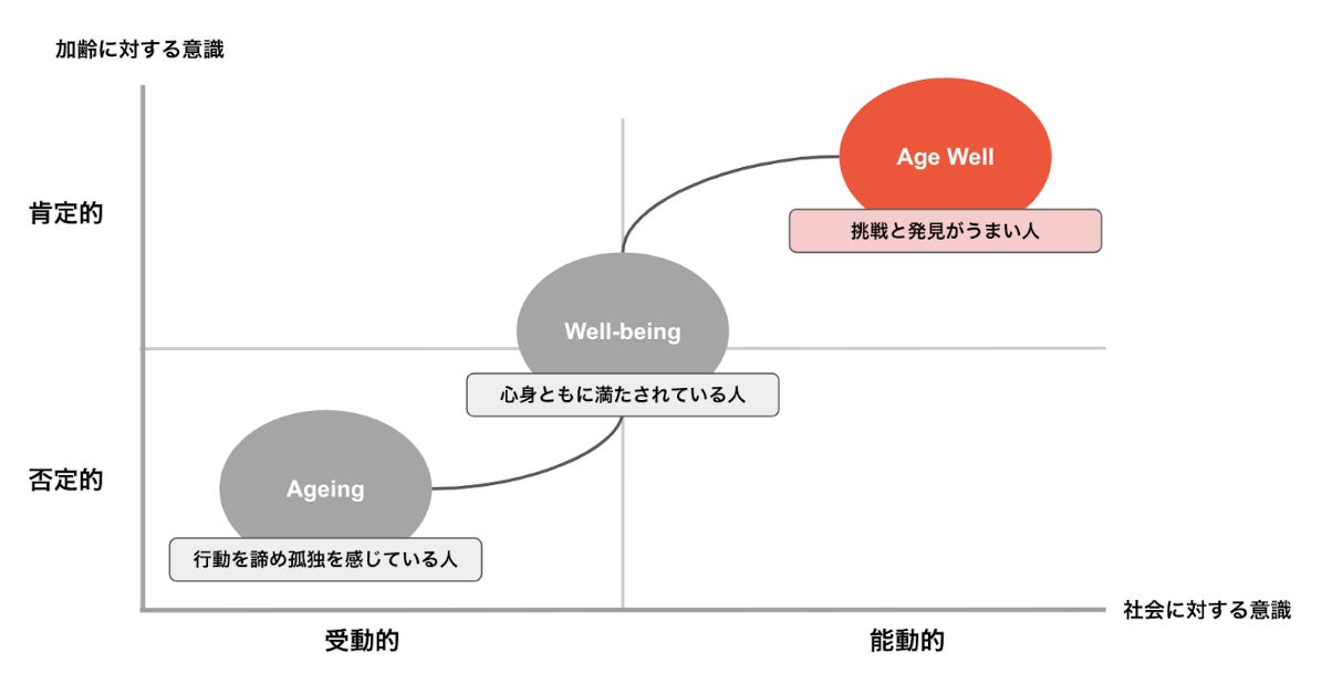 これらはシニアのAge-Wellに伴走した事例の一部に過ぎませんが、“シニアのネガティブはポジティブに変えられる“ことを証明するものでもあり、これこそが創業から4年間、シニアに向き合い続けたことで見えてきた弊社の目指す世界観であると確信しています。そして、もう一つわかったことは、Age-Wellはデザインできるということ。先の事例に挙げたDesignerの存在があったように、シニア1人でAge-Wellを実現することは難しくても、周囲の人や地域や社会が伴走すれば、Age-Wellは実現可能になるのです。