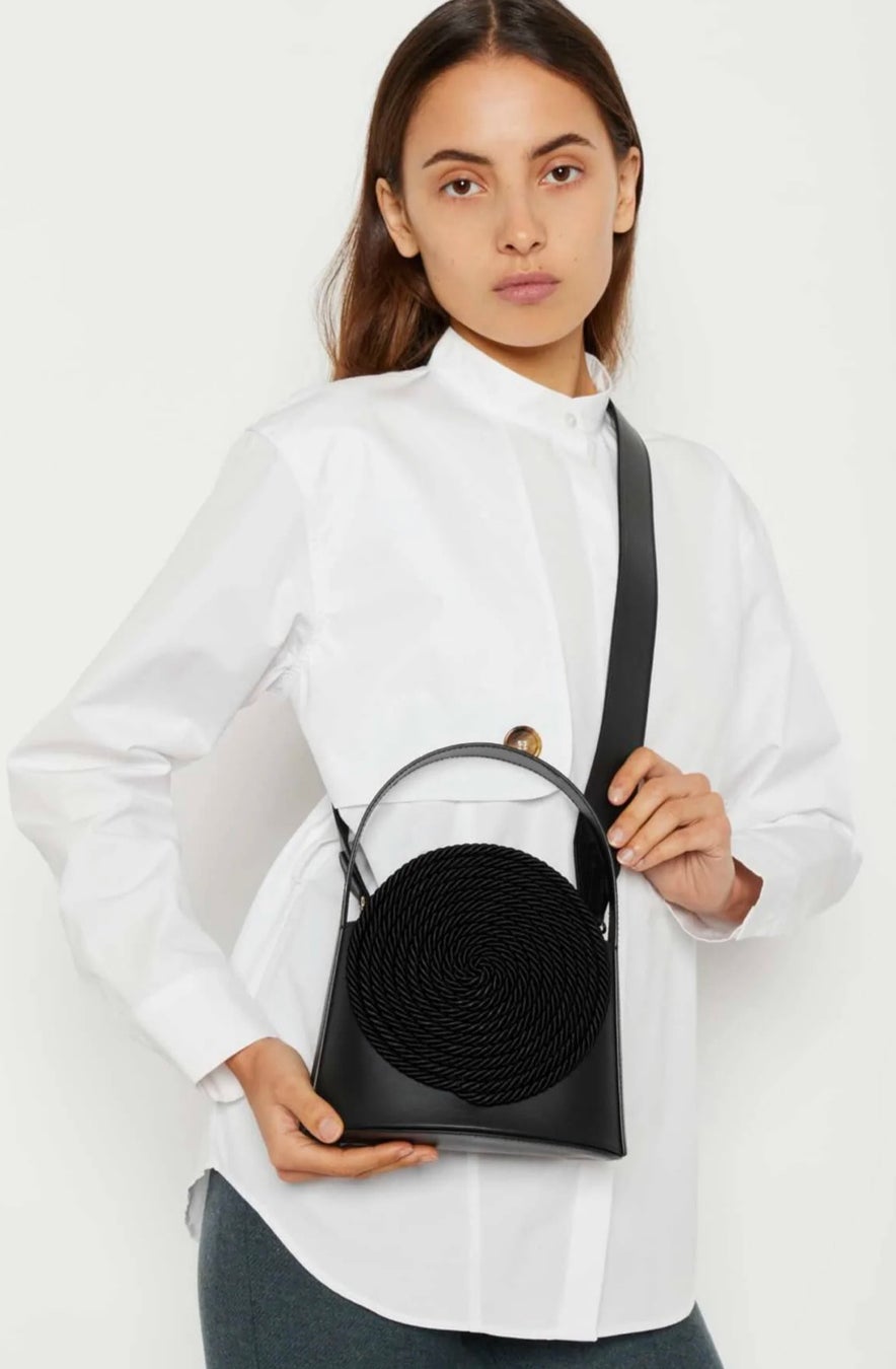 渦を巻くようにあしらわれたフランスの伝統的なパスマントリーの刺繍がデザインのポイント。なめらかなカーフレザーを用いて、スペインの職人によって手作りされています。独創的かつスタイリッシュな佇まいの実用的なデイリーバッグ。肩がけや斜め掛けでもお持ちいただけるレザーのショルダーストラップも付属しています。日常使いからパーティーシーンまで活躍し、和装のコーディネートにも合わせやすいデザイン。オレンジ、パープル、ブラック、ベージュの豊富なカラーバリエーションを用意しています。