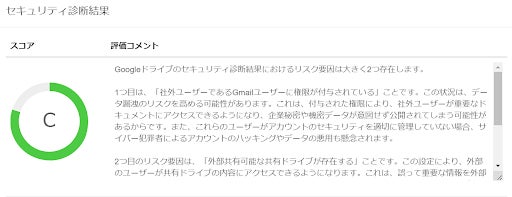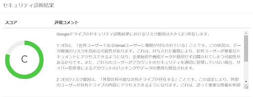 診断結果では、共有ドライブのセキュリティの安全性を示すスコアがA~Eの5段階で表示されます。