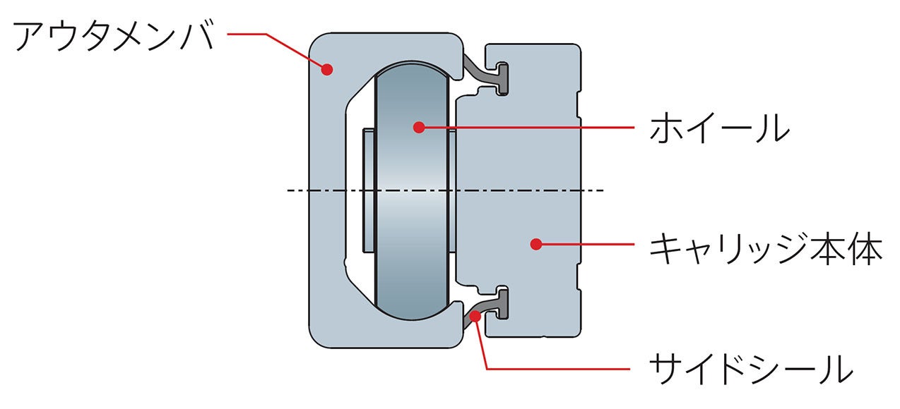 「Advanced Wheel Guide」はアウタメンバと、ホイールを装着したキャリッジで構成されるユーティリティスライドです。