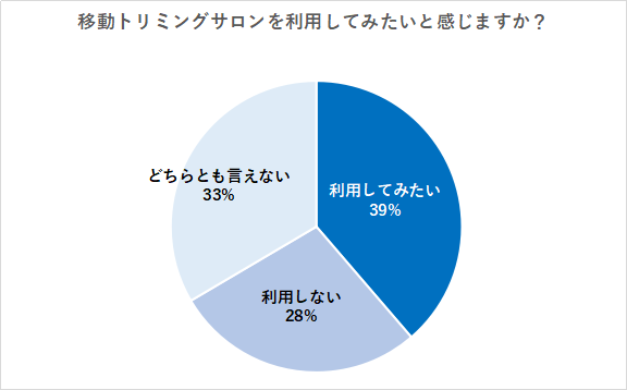 今回のアンケートに回答いただいた方に「移動トリミングサロンを利用してみたいか」伺ったところ、下記のような結果となりました。