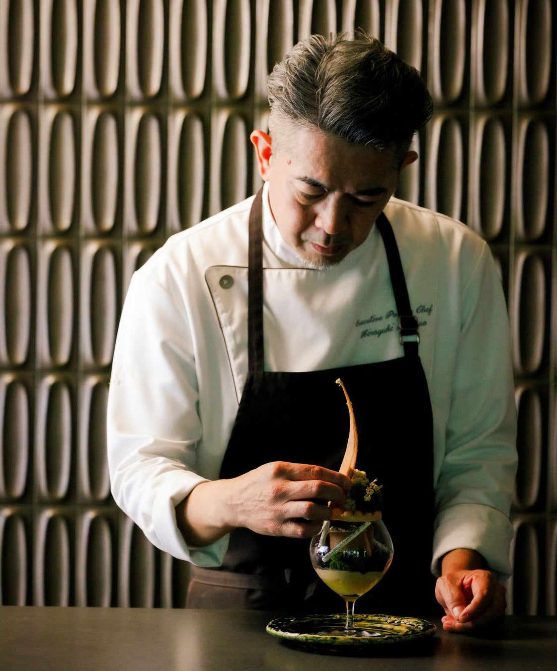 関西のラグジュアリーホテルにて、約40年近い経験に培われた技術と溢れる感性で、独創的なスイーツを数々開発。菓子職人として、ディスプレイづくりもこなし、デコレーションや細工菓子のコンテストにて大阪府知事賞や最優秀賞などの受賞歴を持つ。開業直後から好評の季節の移ろいを反映した、和菓子に愛らしい洋菓子のアフタヌーンティーは、目にも楽しく、口福なひとときを届ける。