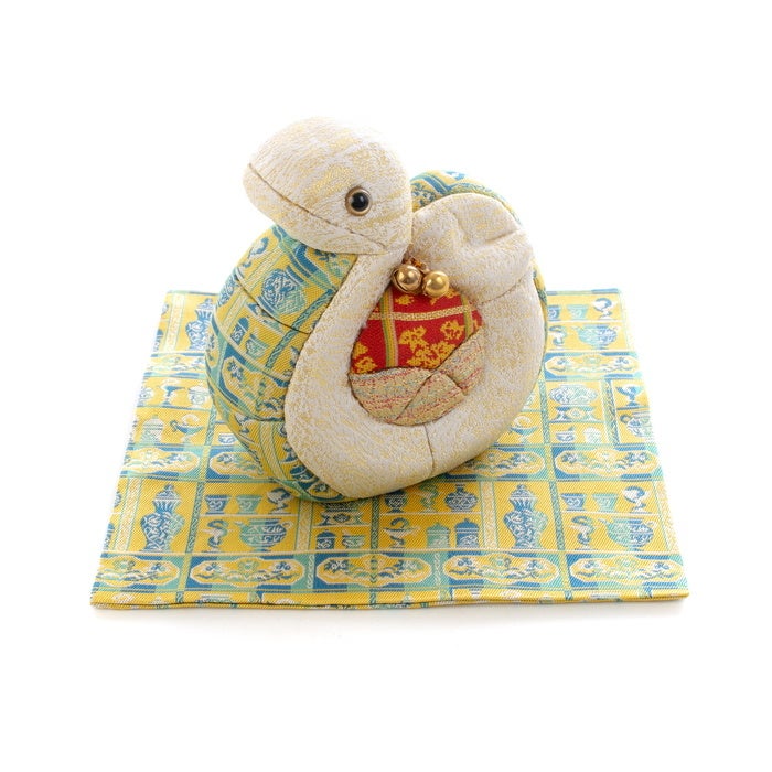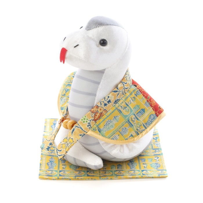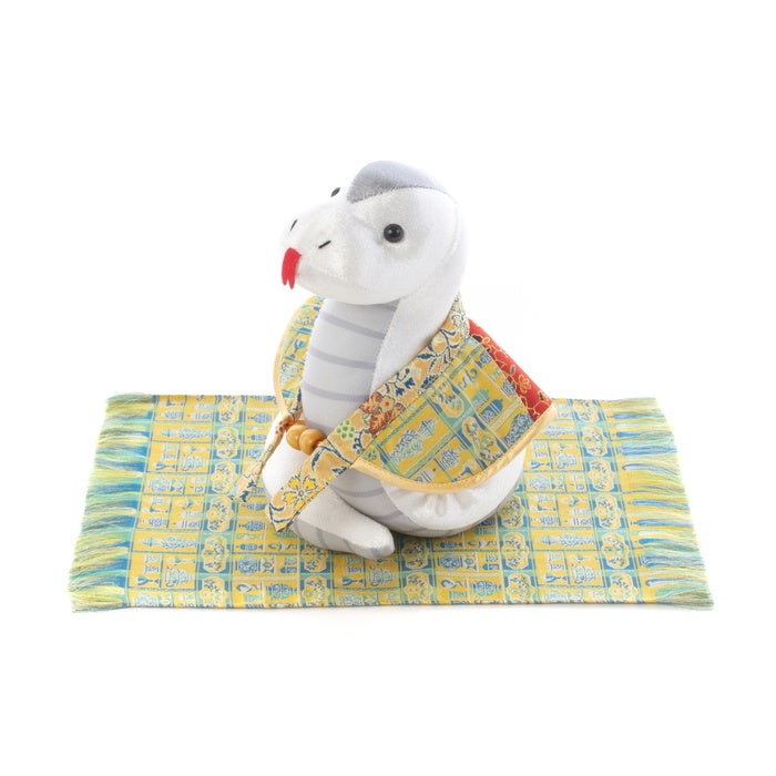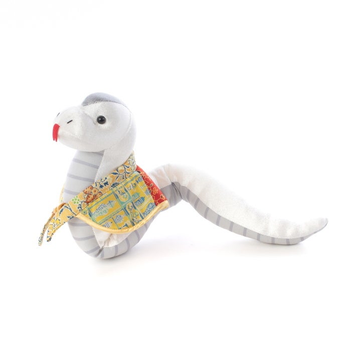 十二支の「巳」は、脱皮を繰り返すヘビの様子から再生や変革といった象徴の存在として知られており、心機一転のスタートを意味するとも言われています。また、古くからヘビそのものが金運や繁栄のシンボル、更には「家の守り神」として祀られ、大変縁起が良いとされてきました。そのしなやかさと力強さから、現代においても運気上昇や家運隆盛などの願いを込められることの多いヘビのデザインですが、龍村美術織物では、1年の厄を払い、福をもたらす願いを込める干支人形としてご用意致しました。新年を迎えるに当たり、幸福をもたらす象徴である干支「巳」の人形をぜひお飾り下さい。