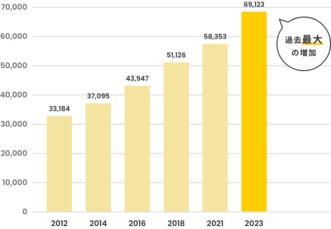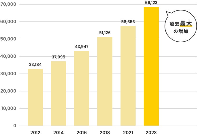 日本語指導が必要な児童生徒:69,123人(日本語指導が必要な児童生徒の受入状況等に関する調査・令和5年度)