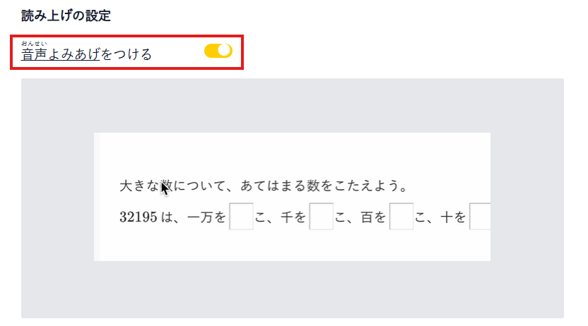 今回追加された機能は、ICT教材eboardのデジタルドリルの問題文やヒント、答え、解説などを音声で読み上げるものです。