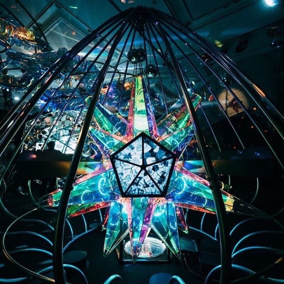 光の反射を用い、七変化する日本古来のイリュージョンである万華鏡を色とりどりの観賞魚をメインに日本の鏡玉集団である、ミラーボーラーズと創り上げた空間に多種多様なビジュアルディレクションを繰り広げる苦虫ツヨシの絵画で圧倒的な異空間に誘うコラボ作品。