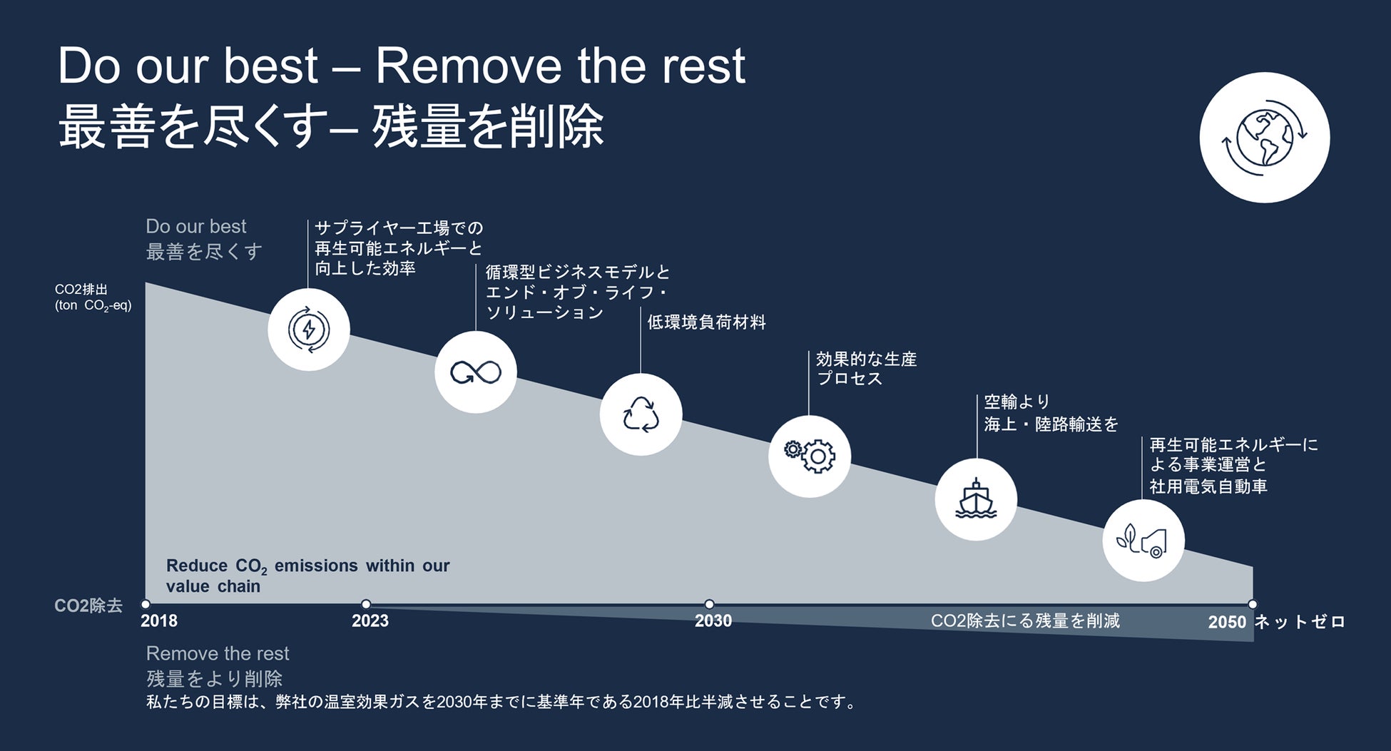 - 【気候変動戦略:Do our best/最善を尽くす – Remove the rest/残量を削減する】
