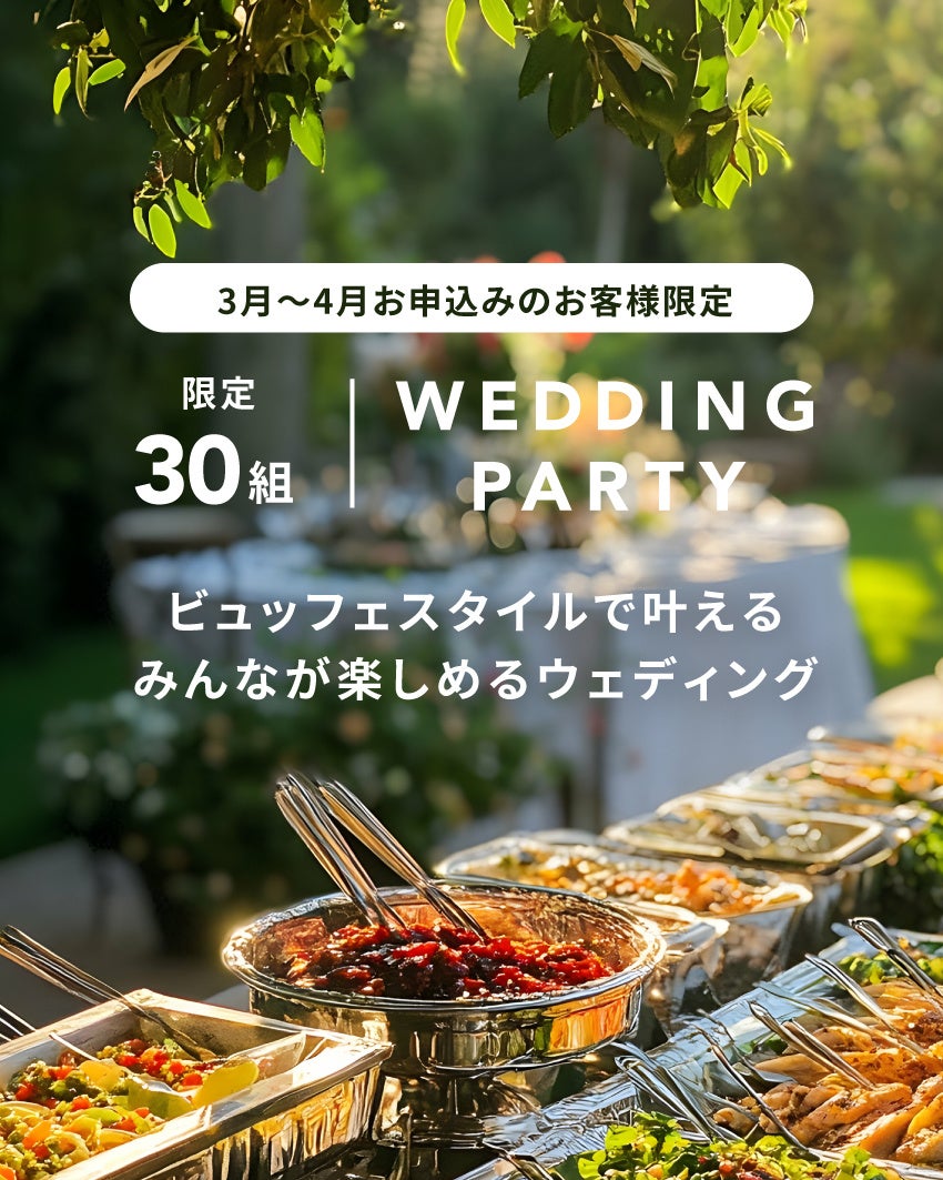 多くのカップルが求める「カジュアルさ」と「きちんと感」に応えたのが、今回の「ビュッフェの結婚式キャンペーン」です。